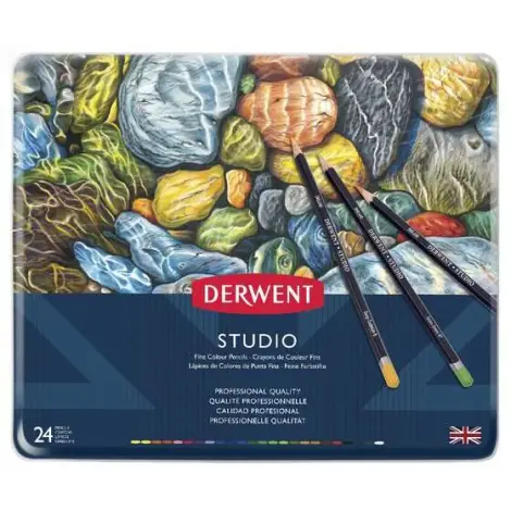 - 24 pencils are set in a convenient, hinged metal tin