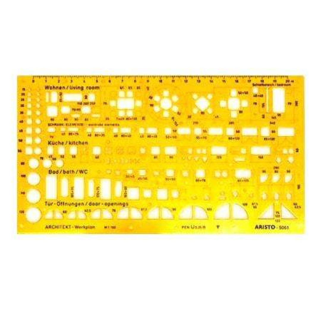 Made of plastic in contrast-enhancing transparent orange·Scale 1:100 ·Equipped with level and direction symbols·For drawing symbols for layouts of living rooms, bed rooms, dining rooms, kitchen and sanitary fittings as well as for door openings in domestic construction·In accordance with the standards DIN 1356, DIN 18011, DIN 18022 and for microfilming ·With ink-bosses·Suitable for drawing pens.