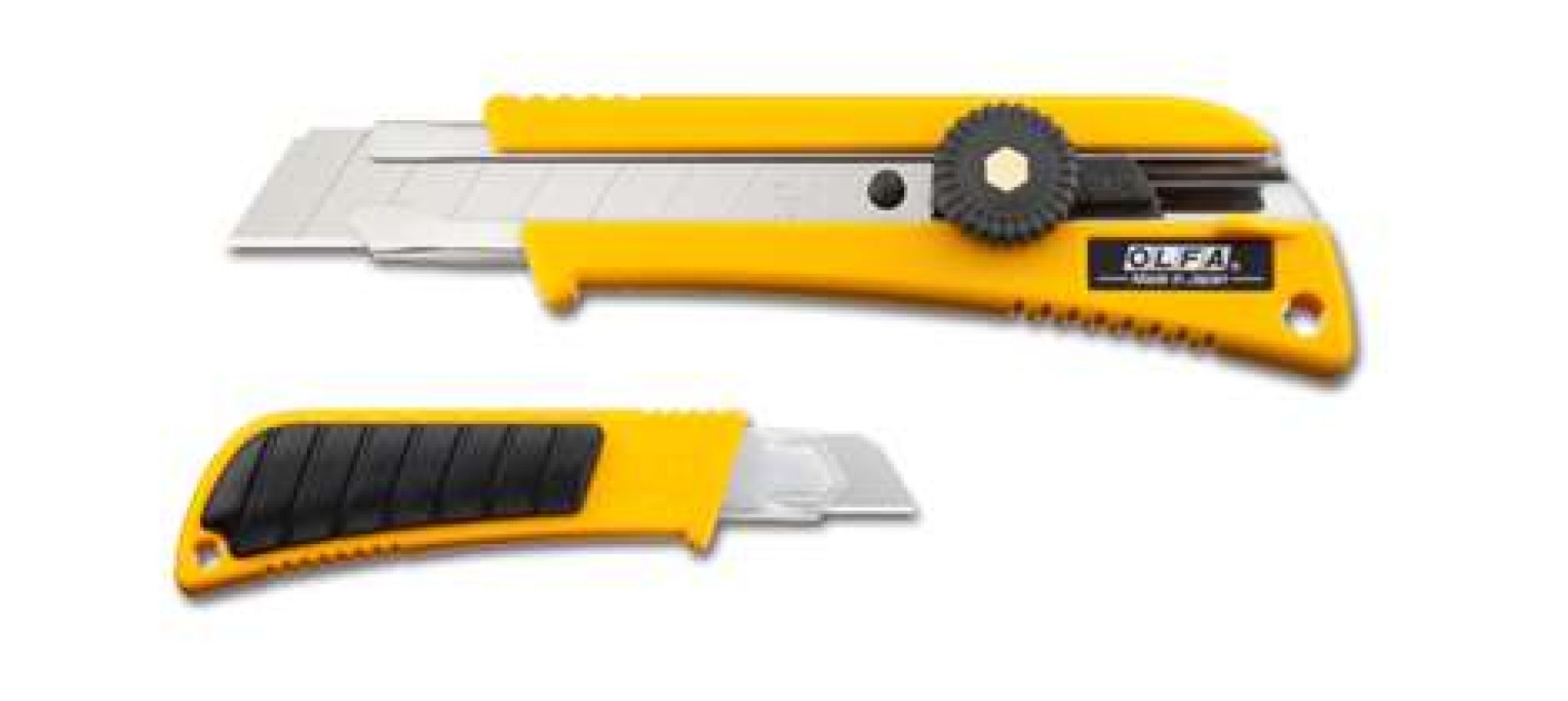 OLFA L-2 - 18mm-es standard kés / sniccer. A stabil fogás érdekében markolatában gumibetéttel ellátott csavaros rögzítésű vágókés.