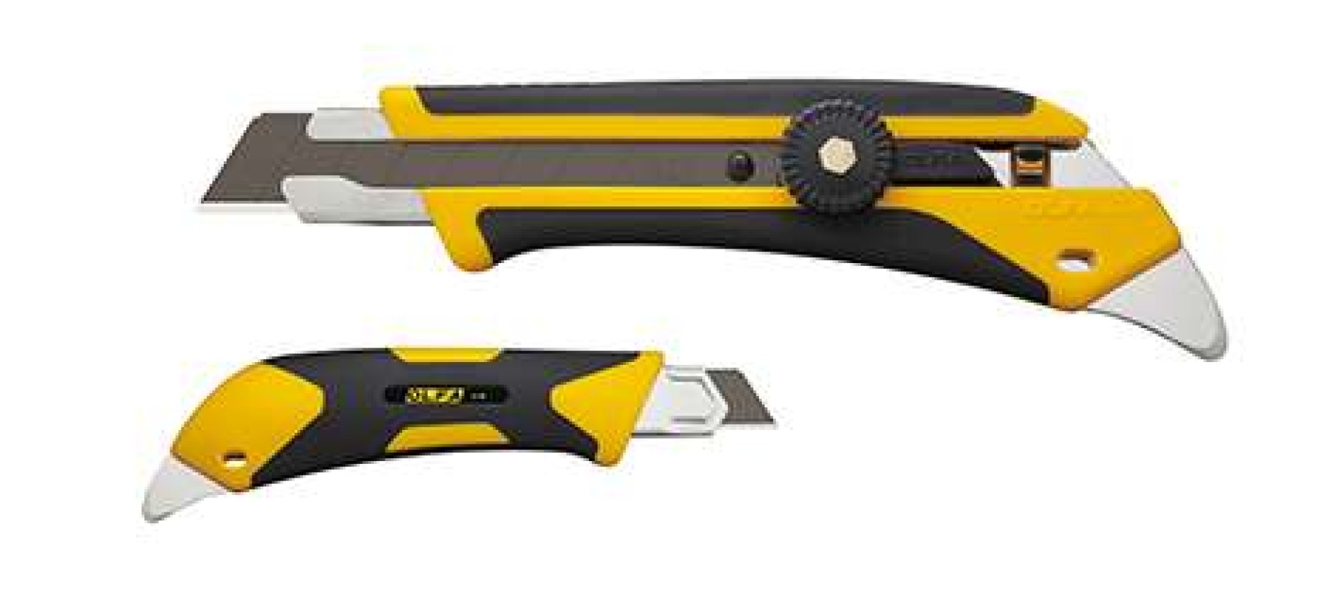 OLFA L-5 - 18mm-es standard kés / sniccer. Az X Design sorozat nagy igénybevételre tervezett csavaros pengerögzítésű tagja. Üvegszállal erősített markolata végén erős fém fül található.