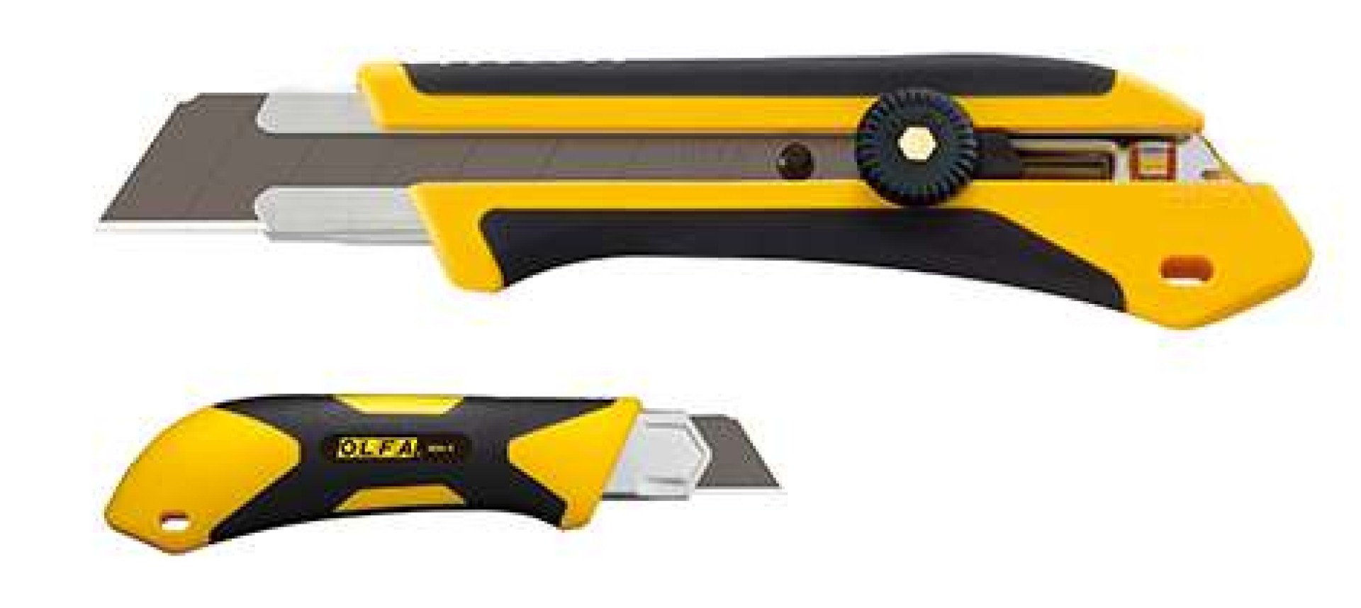OLFA XH-1 - 25mm-es standard kés / sniccer. Az X Design sorozat extra igénybevételre tervezett csavaros pengerögzítésű tagja. Üvegszállal erősített markolattal.