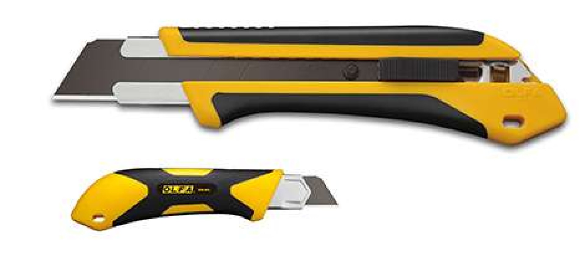 OLFA XH-AL - 25mm-es standard kés / sniccer. Az X Design sorozat extra igénybevételre tervezett automata pengerögzítésű tagja. Üvegszállal erősített markolattal.