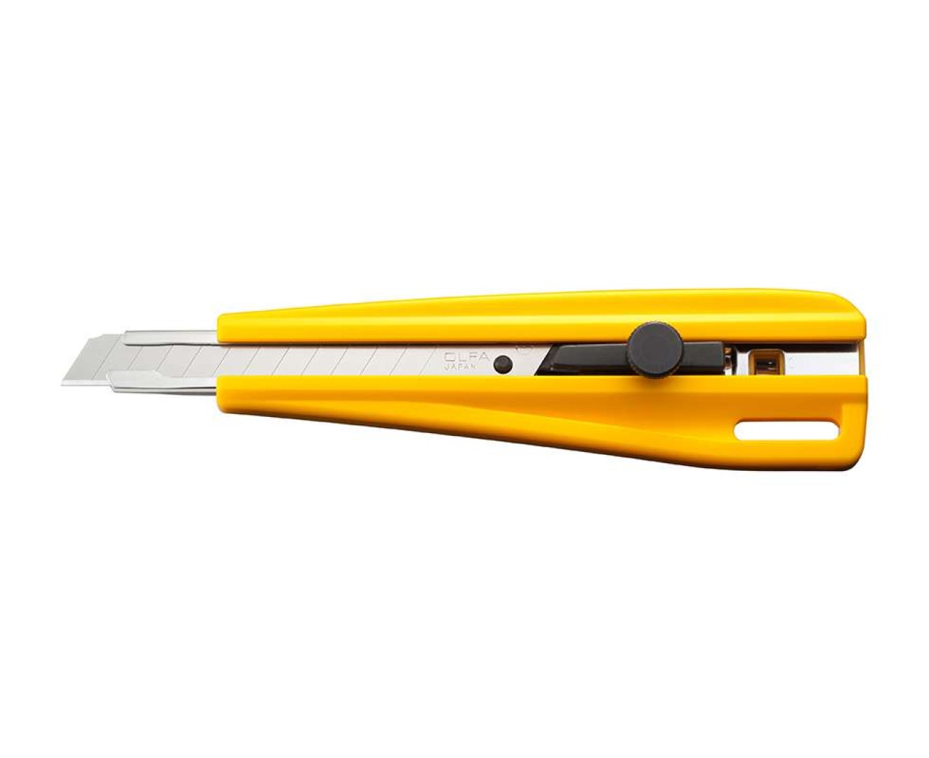 OLFA 300 - 9mm-es standard kés / sniccer. Acélház, széles, ütésálló műanyag markolat és csavaros pengerögzítés jellemzi, így alkalmasabb keményebb anyagok vágására.