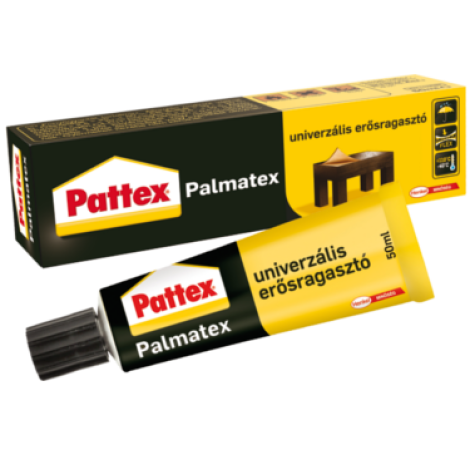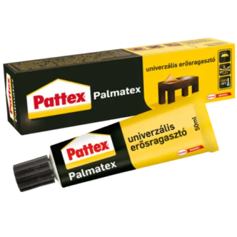 A Pattex Palmetex univerzális erősragasztó a kontaktragasztók leggyakrabban használt ragasztója., rendkívül széles felhasználhatóság jellemzi. Gyorsan és nagyon erősen ragaszt. Könnyen kenhető, szinte minden felület minden felülethez ragasztható vele (nem alkalmas PE, PP, habosított polisztirol – Styropor® – és lágy PVC ragasztásához). Vízálló, a ragasztás ellenáll híg savaknak és lúgoknak.
