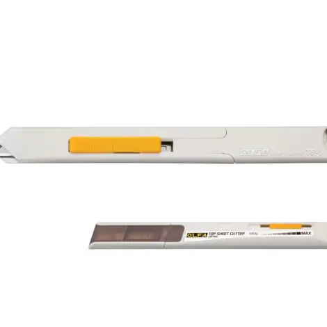 OLFA TS-1 - Riccelő dekor és hobby kés. Igazodva a különböző lapvastagságokhoz a penge vágási mélysége állítható. Ezzel biztosítva, hogy mindig csak a felső lap legyen elvágva. A markolat 2 db tartalékpengét tartalmaz.