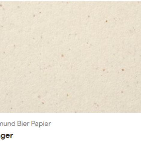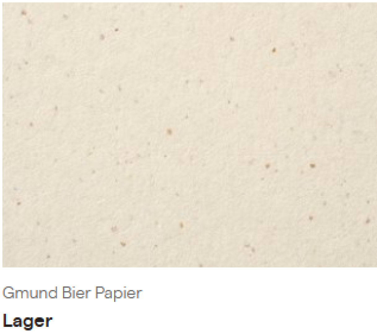 A Gmund Bier papír fő jellemzője a rusztikus, föld szerű textúra, és nem utolsósorban a sör készítéséhez használt visszamaradt alapanyagok (Komló és maláta) felhasználása.