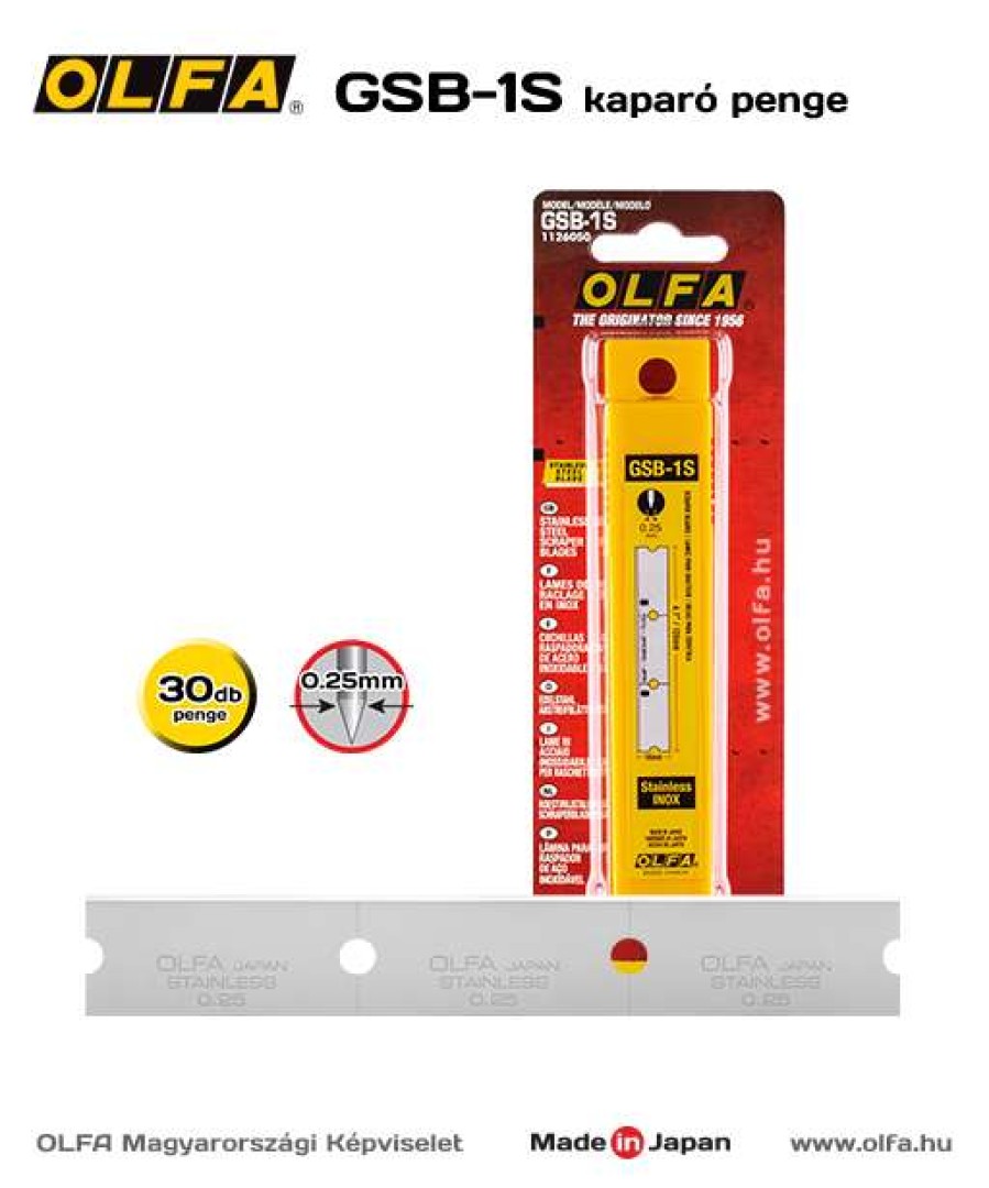 OLFA GSB-1S - Rozsdamentes kaparó penge. A következő kaparóhoz alkalmazható: GSR-1