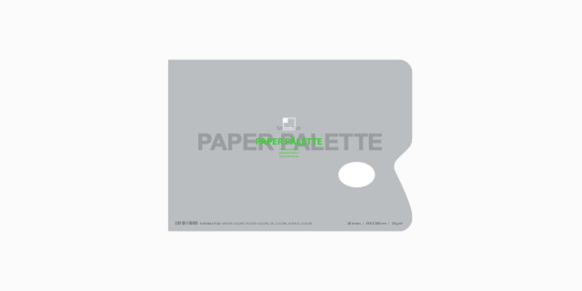 A ShinHan Paper Paletta hüvelykujj lyukkal rendelkezik a könnyű fogás és kezelés érdekében. Ez a speciális bevonatú fehér papír nem engedi átszívódni a festéket. Ideális olajok, akrilok, akvarellek, gouache-ok keverésére. Keverje össze, tépje le, és mindig kezdje újra minden festéskor!