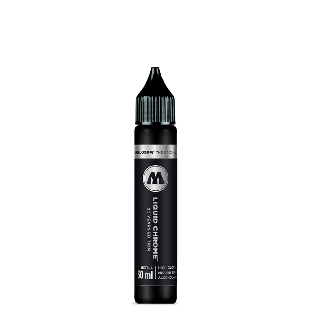 LIQUID CHROME™ A várva várt folyékony króm kapható 30 ml-es újratöltőként. Liquid Chrome™ többéves egyedülálló eredménye a BURNER™ tinta továbbfejlesztésének. A legjobb tükörhatás sima, nem nedvszívó felületeken.