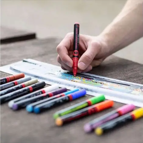 Egy igazi alap a gyors és precíz munkához. Ez az alkoholbázisú permanentmarker kiválóan alkalmas szövegek, feliratok írásához. Vásznon valú munkákhoz is tökéletes. Az egyetlen különbség a nagy testvéréhez képest, a kényelmes zsebméret. Mind a 16 szín megegyezik a PREMIUM kannák színskálájával.