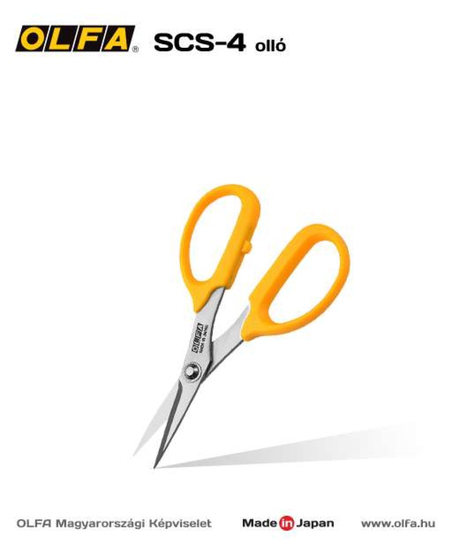 OLFA SCS-4 - Olló. Precíz, pontos vágásokhoz alkalmazható olló. 3,5 cm-es vágóél és kényelmes kialakítású markolat jellemzi.