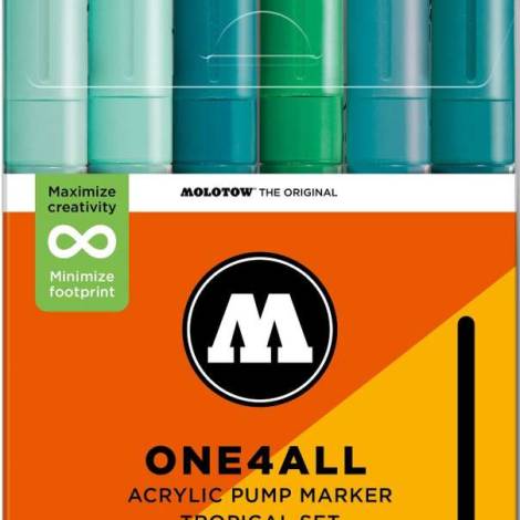 A Molotow ONE4ALL típusú 227HS akril pumpás marker szabványos cserélhető 4mm-es heggyel rendelkezik, és 2024-től 74 színben kapható, s újratölthető. Nagy fedőképességgel rendelkezik, tartós és szinte minden felületen UV-álló. Akár szörfdeszkára, vászonra, hűtőre, graffitire vagy tornacipőre festesz: semmi sem lehetetlen. Nem hiányozhatnak egyetlen művész felszereléséből sem!