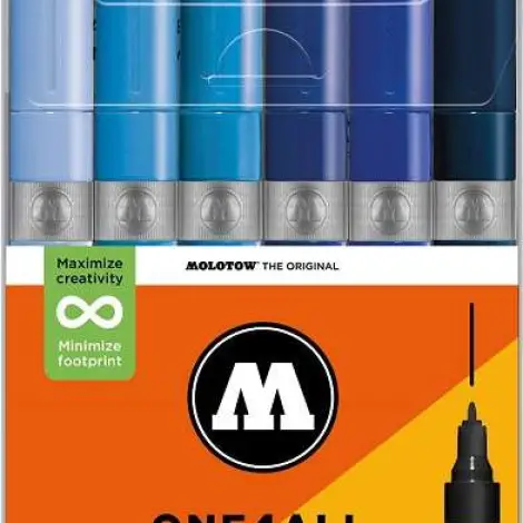 A Molotow ONE4ALL 2024-től 74 színben kapható, újratölthető. Nagy fedőképességgel rendelkezik, tartós és szinte minden felületen UV-álló. Akár szörfdeszkára, vászonra, hűtőre, graffitire vagy tornacipőre festesz: semmi sem lehetetlen. A hatékony színek (fluoreszkáló és fémes) sokkal vonzóbbá teszik a színezést. Nem hiányozhatnak egyetlen művész felszereléséből sem!