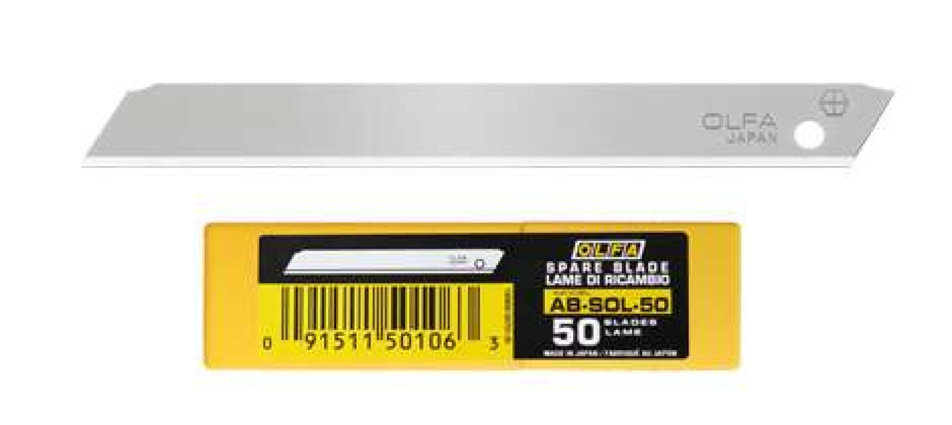 OLFA AB-SOL-50 - 9mm-es standard penge. A következő standard késekhez alkalmazható: SPC-1, S, 180 Black, ES-1/green, A-1, A-2, A-3, A-5, 300, NA-1, SVR-1, SVR-2, PA-2 és XA-1.