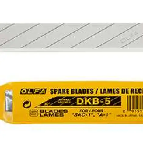 OLFA DKB-5 - 9mm-es standard, hegyesebb tördelhető penge. A következő standard késekhez alkalmazható: SPC-1, S, A-1, A-2, A-3, NA-1, SVR-1 és PA-2.