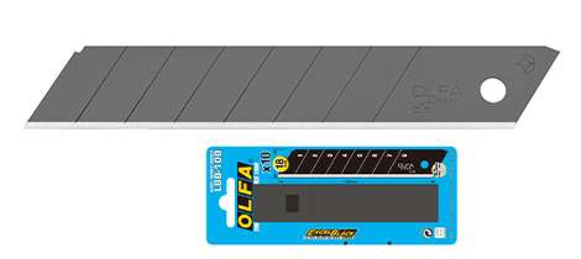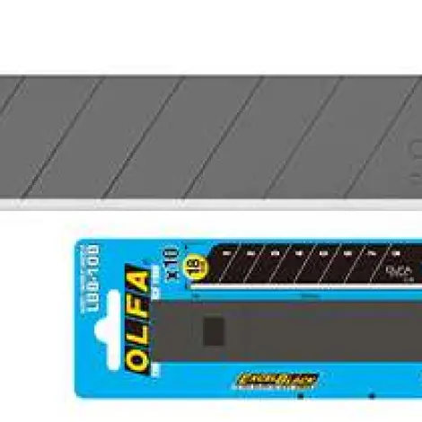 OLFA LBB-10B - 18mm-es keskenyebb élszögű edzett tördelhető penge. A következő standard késekhez alkalmazható: SL-1, BN-L, BN-AL, ML, L-1/green, L-2, XL-2, L-5, L5-AL, OL, NOL-1, NL-AL, PL-1, CL és CMP-2.