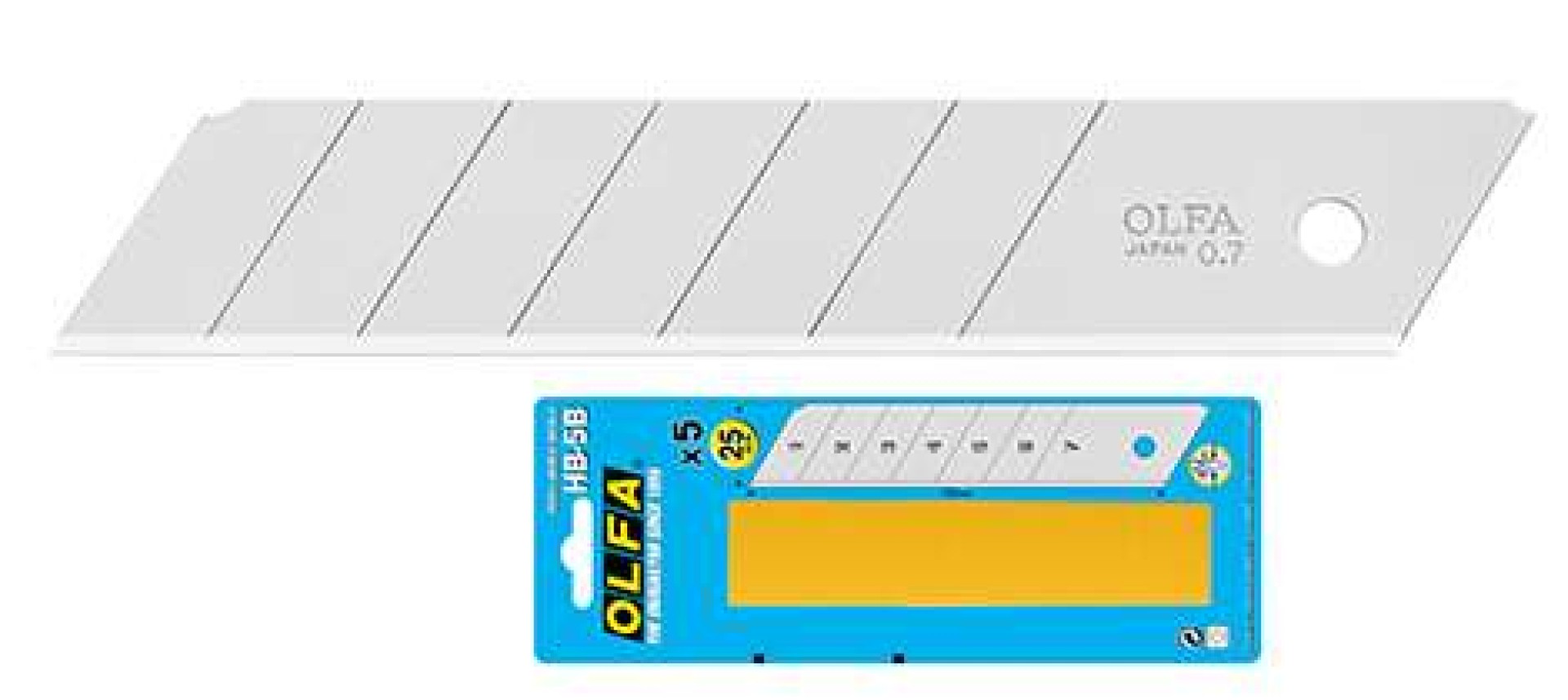 OLFA HB-5B - 25mm-es standard tördelhető penge. A következő standard késekhez alkalmazható: H-1, XH-1 és XH-AL.