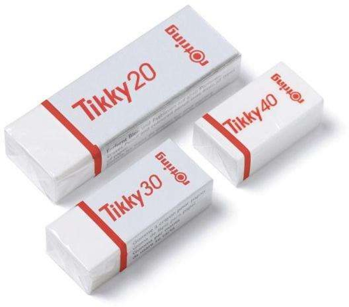 a rotring Tikky radírok eltávolítják a fekete és a színes vonalakat a radír mindig tiszta marad, köszönhetõen a szennyezõdést megkötõ adaléknak, továbbá annak, hogy összetétele nem tartalmaz agresszív szemcsés anyagokat