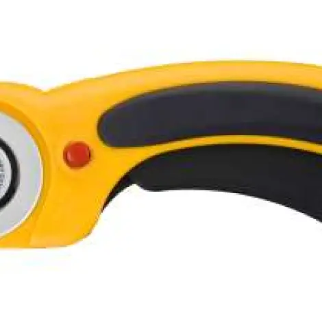 OLFA RTY-2/DX - Deluxe Textilkés. 45 mm-es körpengével szerelt foltvarró / patchwork kés. Kényelmes csúszásmentes markolatán a pengét lehet fix, illetve visszaugró módba állítani. Az OLFA PIB-45-1 „cakkozó” pengéjével is használható! Könnyű pengecsere jellemzi.