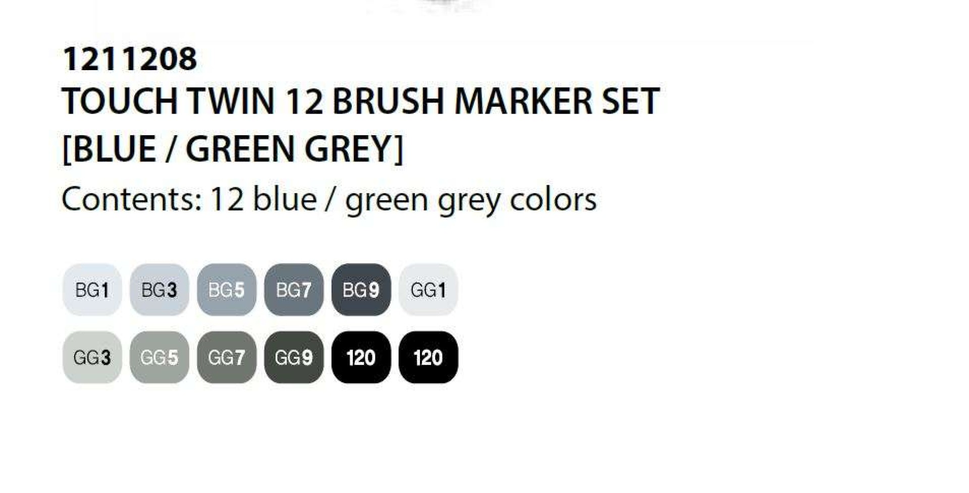 Touch Brush Marker 2 hegyű 12 db-os filctoll készlet, Blue Grey/Green Grey