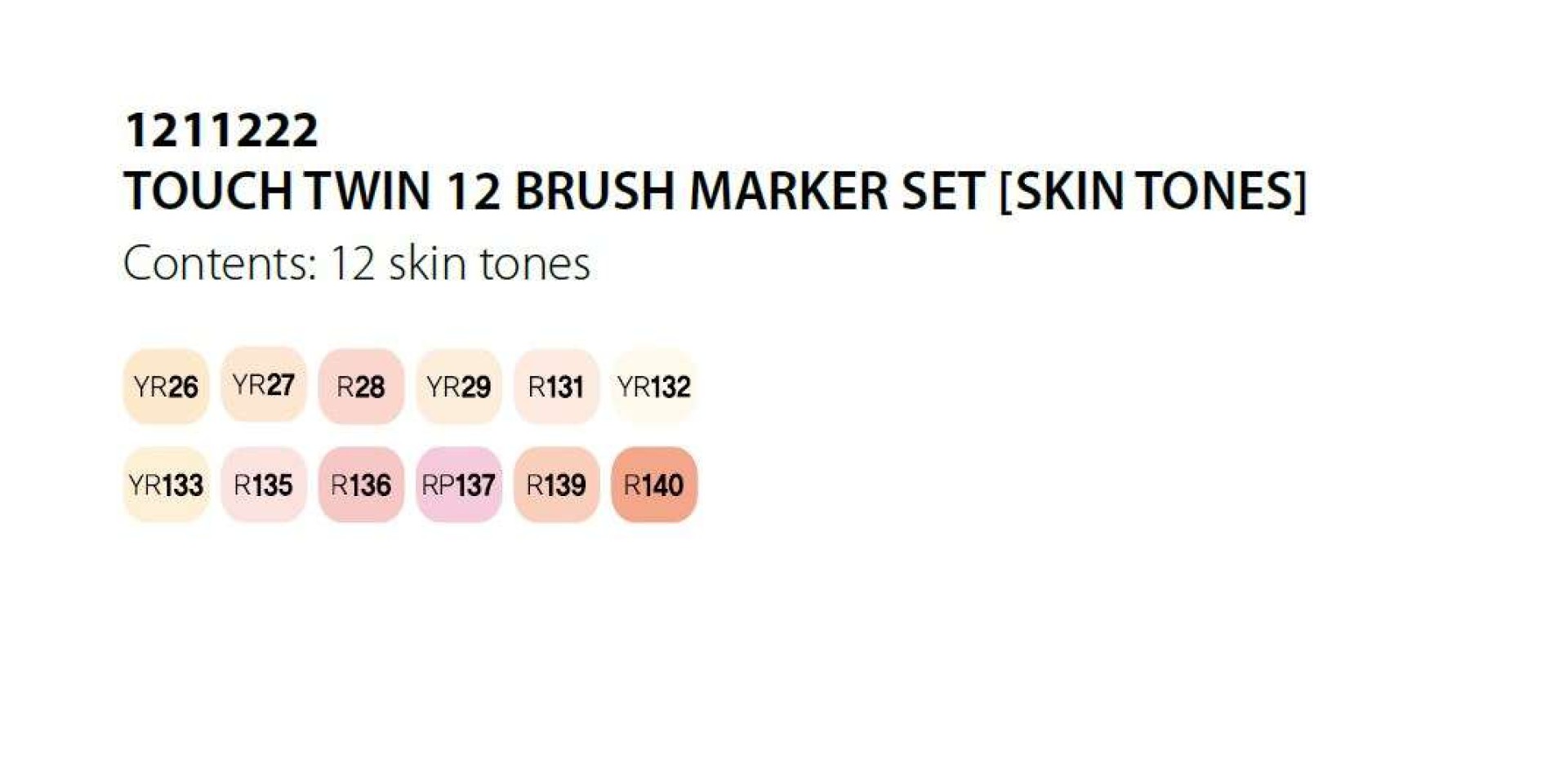 Touch Brush Marker 2 hegyű 12 db-os filctoll készlet, Skin tones