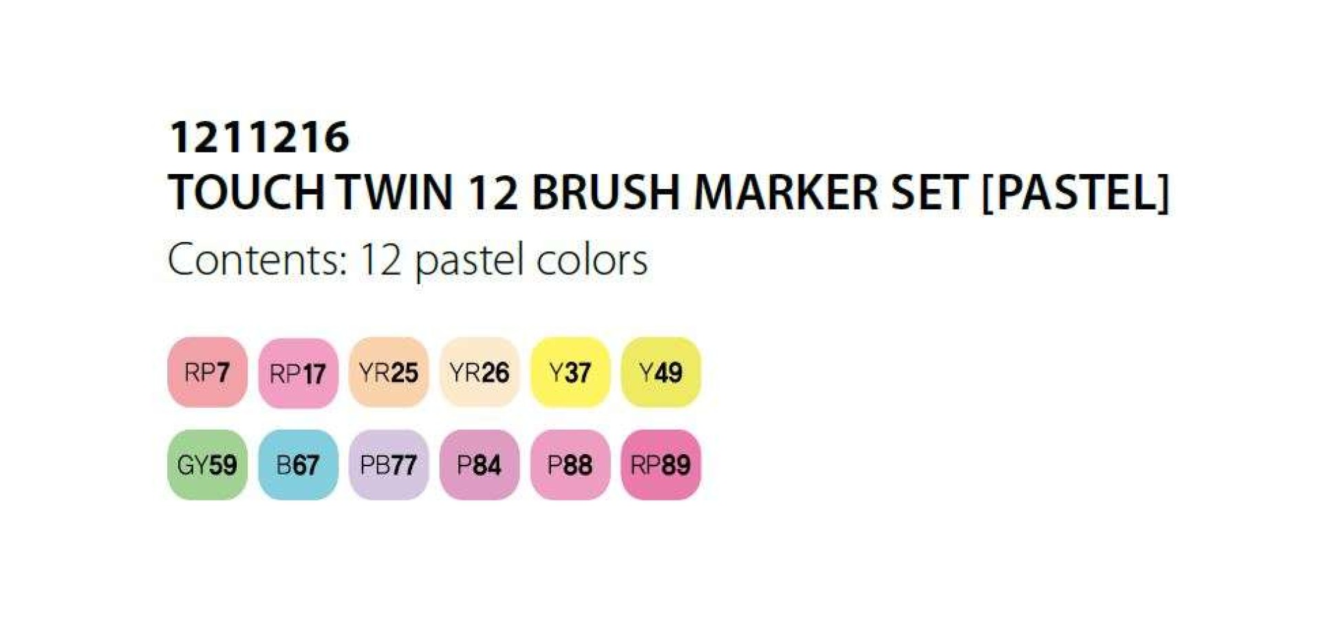 Touch Brush Marker 2 hegyű 12 db-os grafikai filctoll készlet, Pastel