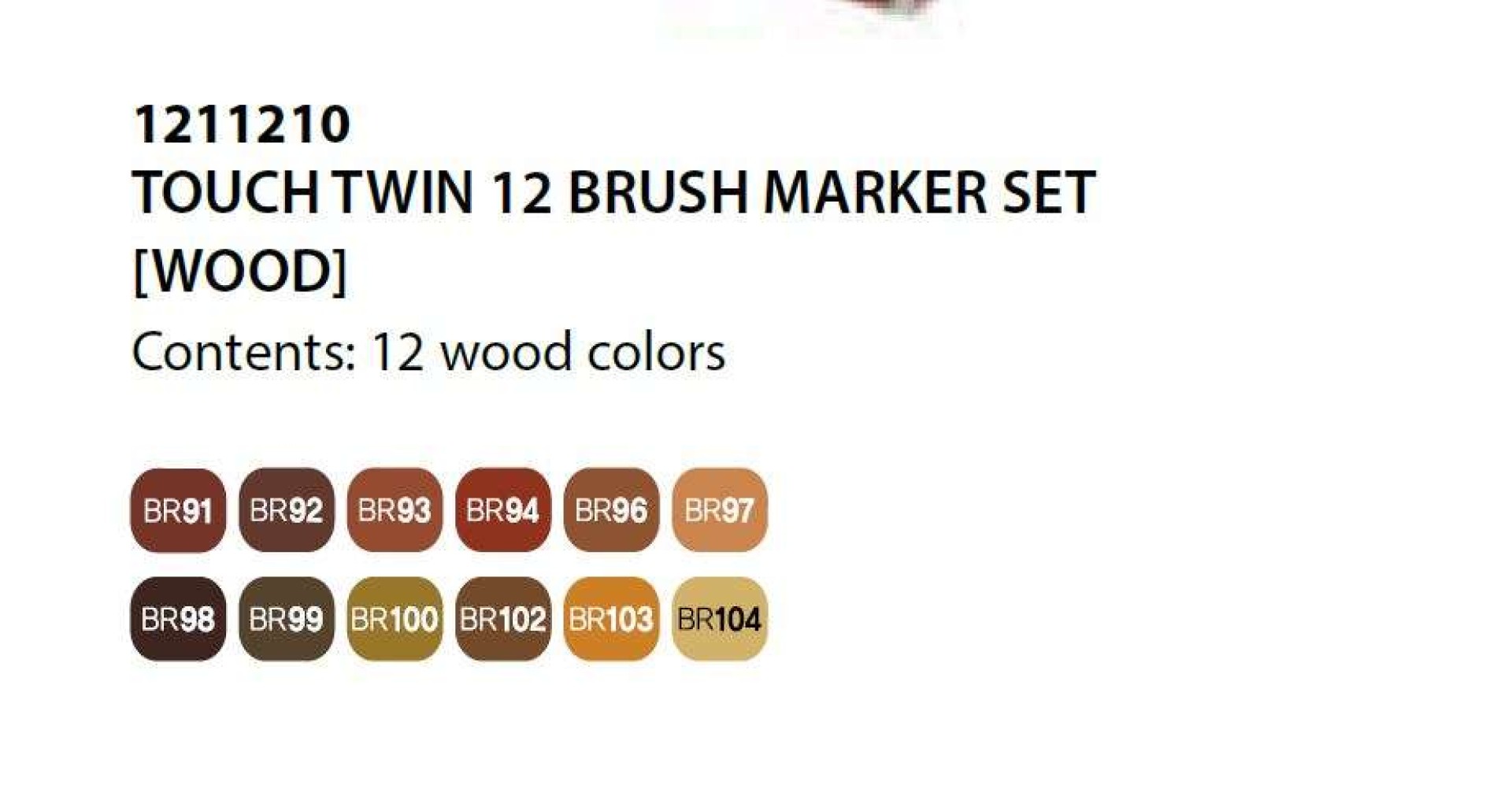 Touch Brush Marker 2 hegyű 12 db-os grafikai filctoll készlet, Wood