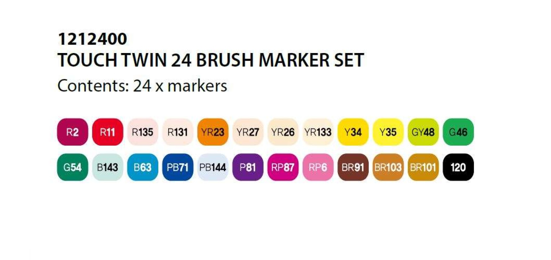 A TOUCH™ Brush Marker 204 színben kapható, kiváló minőségű alkohol alapú tintákkal. Ezek a tinták nem oldják fel a tonertintát a nyomtatott papíron, ami lehetővé teszi a felhasználó számára, hogy átlépje a vonalakat anélkül, hogy a tinta megfolyna, és rétegezési technikák alkalmazásakor nem szennyezik az alatta lévő színeket. A színek az egészen halványtól az élénkig terjednek, több színprizmában.