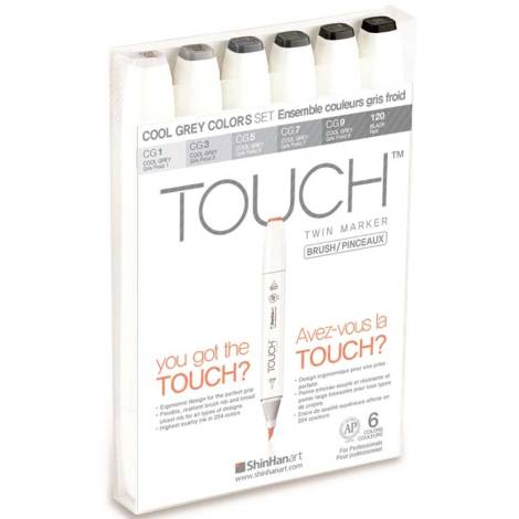 Touch Brush Marker 2 hegyű 6 db-os filctoll készlet, cool grey