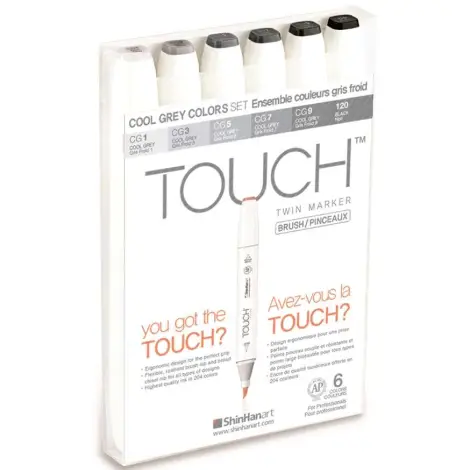 A TOUCH™ Brush Marker egyike a világ vezető márkáinak a markerkek között. Ahogy a „TOUCH™ Brush” név is sugallja, a marker egyik hegye egy renkívül tartós és rugalmas ecsethegy, míg a másik vége egy vágott hegy. Mindkét vég lehetővé teszi a felhasználó számára, hogy nagy területeket színezzen, finom vonalakat hozzon létre, precízen rétegezzen, és elkenődés vagy folyás nélkül vigye fel a tintát. Számtalan ipari tervező, karikaturista, művész és illusztrátor választja világszerte, akik a legjobb minőségű termékeket akarják.