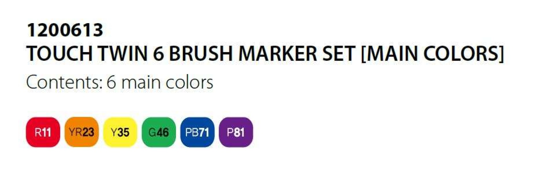 A TOUCH™ Brush Marker egyike a világ vezető márkáinak a markerkek között. Ahogy a „TOUCH™ Brush” név is sugallja, a marker egyik hegye egy renkívül tartós és rugalmas ecsethegy, míg a másik vége egy vágott hegy. Mindkét vég lehetővé teszi a felhasználó számára, hogy nagy területeket színezzen, finom vonalakat hozzon létre, precízen rétegezzen, és elkenődés vagy folyás nélkül vigye fel a tintát. Számtalan ipari tervező, karikaturista, művész és illusztrátor választja világszerte, akik a legjobb minőségű termékeket akarják.