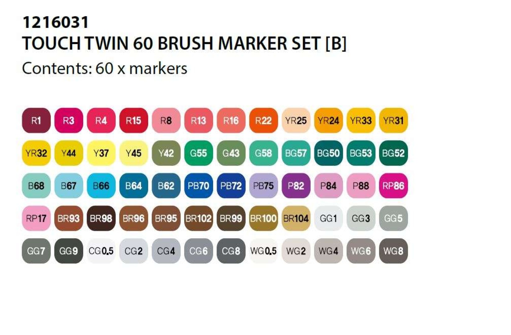 A TOUCH™ Brush Marker egyike a világ vezető márkáinak a markerkek között. Ahogy a „TOUCH™ Brush” név is sugallja, a marker egyik hegye egy renkívül tartós és rugalmas ecsethegy, míg a másik vége egy vágott hegy. Mindkét vég lehetővé teszi a felhasználó számára, hogy nagy területeket színezzen, finom vonalakat hozzon létre, precízen rétegezzen, és elkenődés vagy folyás nélkül vigye fel a tintát. Számtalan ipari tervező, karikaturista, művész és illusztrátor választja világszerte, akik a legjobb minőségű termékeket akarják.