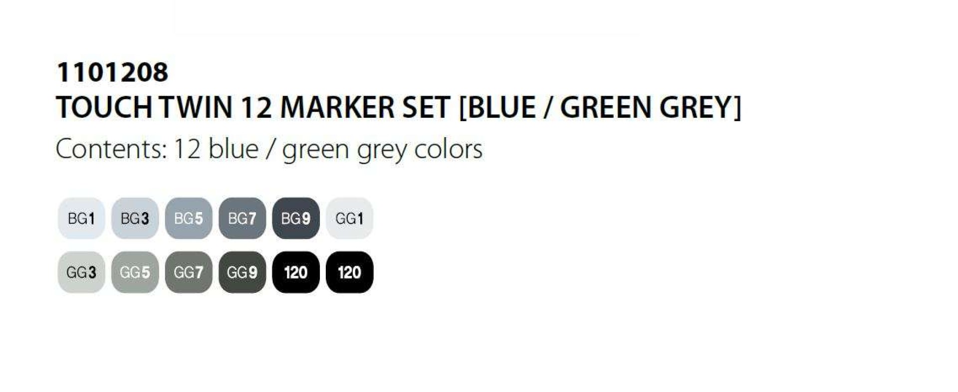 Touch Marker 2 hegyű 12 db-os grafikai filctoll készlet, Blue Grey/Green Grey