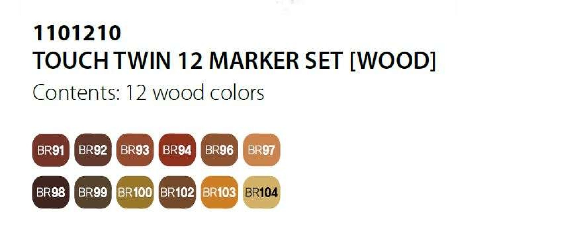 Touch Marker 2 hegyű 12 db-os grafikai filctoll készlet, Wood