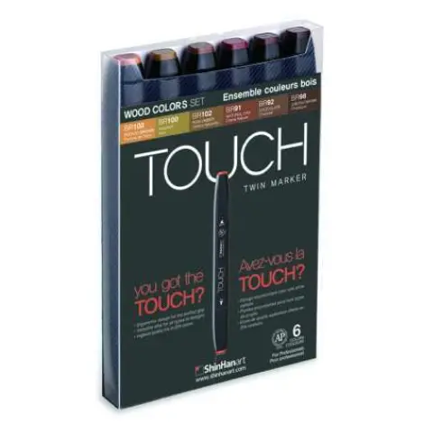 Touch Marker 2 hegyű 6 db-os grafikai filctoll készlet, wood
