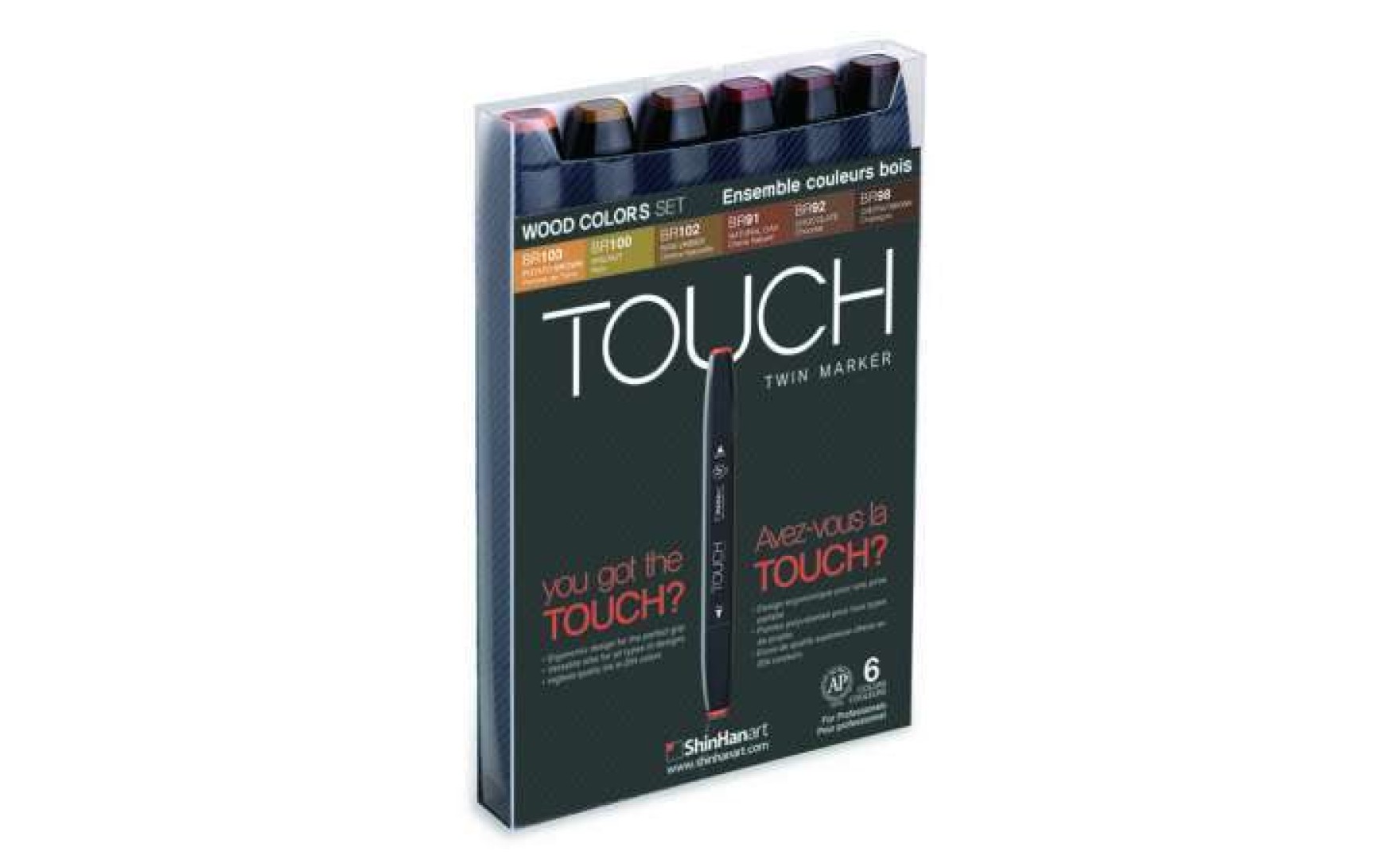 A TOUCH™ Marker egyike a világ vezető márkáinak a markerkek között. Ahogy a „TOUCH™ TWIN” név is sugallja, a marker mindkét végén két kiváló minőségű hegy található. Mindkét vég lehetővé teszi a felhasználó számára, hogy nagy területeket színezzen, finom vonalakat hozzon létre, precízen rétegezzen, és elkenődés vagy folyás nélkül vigye fel a tintát. Számtalan ipari tervező, karikaturista, művész és illusztrátor választja világszerte, akik a legjobb minőségű termékeket akarják.