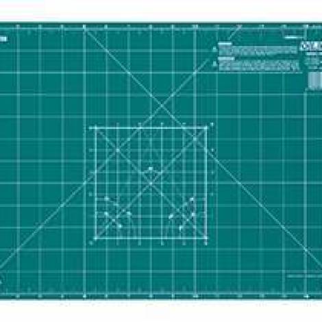 OLFA CM-A4 - Vágóalátét. 21 x 30 cm-es, 2 mm vastagságú, speciális három rétegű "öngyógyuló" vágólap. A vágóalátét egyik oldala inch, másik oldala centiméter beosztású, valamint a leggyakrabban használt szögek is jelölve vannak. Egyaránt használható körpengés foltvarró "patchwork", 9 mm-es standard és dekorációs késekkel.