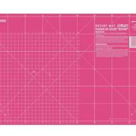 OLFA RM-IC-S/PINK - Vágóalátét. 60 x 45 cm-es, 1,5 mm vastagságú, speciális három rétegű "öngyógyuló" vágólap. A vágóalátét egyik oldala inch, másik oldala centiméter beosztású, valamint a leggyakrabban használt szögek is jelölve vannak. Csak körpengés foltvarró "patchwork" késekkel használható!