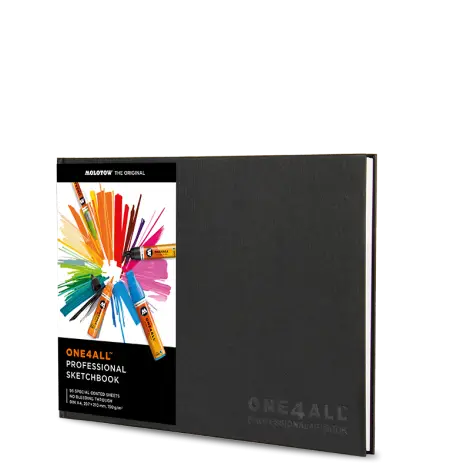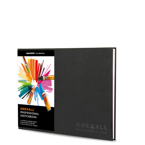 Mindegy, hogy alkohol-, víz- vagy akrilbázisú marker, a magas minőségű ONE4ALL™ vázlatfüzet szinte az összes markerhez kiváló. A kiváló keménykötésű borító mellett egy fekete könyvjelzőszalag és rózsaszín előzéklapok találhatók benne. A borítón egy dombornyomott ONE4ALL™ logo látható. Speciális ANTI BLEED borítás A különleges borítású papír (205 g/m²) garantálja a pontos vonásokat és meggátolja a színek elfolyását, illetve átütését a papíron. A lapok ezáltal mindkét oldalon megrajzolhatók.